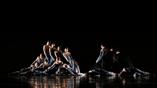 极简的灯光与音乐克制而精妙,将舞台上的舞者们点染成苏醒的群山;随着舞者肢体圆融舒展的提沉冲靠、自然流畅的俯仰伸缩,身体挪移的缓急、群舞组合的疏密、队形调度的开合,不断勾勒出层峦叠嶂的壮阔和山水映照的灵动;往往观众正沉醉于“静影沉璧”,舞者又散作“浮云万里”……当代舞《江渚云山》并非对位黄宾虹同题画作的积墨为骨、渍墨为韵,而是在汉唐神韵当代活化的山水意境中,铺展出中国古典文学与绘画延续至今的可以步入、亦可神游的天地意象,生成独到的物我两忘、天人合一境界。