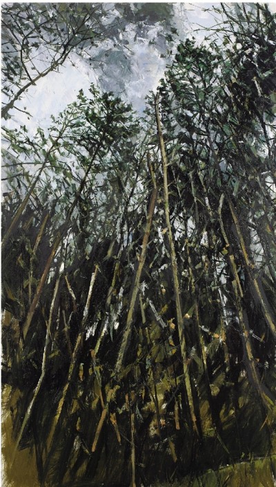 具有坚强自我的许江,在山水中找到了他的精神归宿。他的画幅变小了,画面变成了自我与本我的对话。自我逐渐消融、升华,与山水打成一片。他不再挑剔题材,而是随物赋形,从与物相刃相靡转向相安相忘。许江的山水开启了一个新的境界,物我两忘,无所不适,“若久客还家而不能以遽出也”(王履语)。