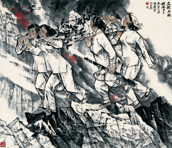王迎春、杨力舟《火线上的姐妹》 纸本设色180cm×200cm 1984年