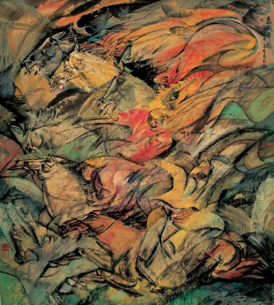 杨力舟《骉駥奔腾》 纸本设色 220cm×185cm 1993年