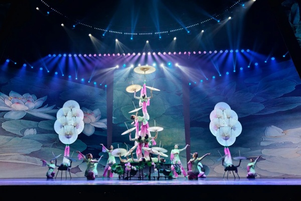 很多杂技节目创排时会从中华文明宝库中汲取养分,比如从沉睡千年的陶俑中汲取灵感,让文物在舞台上“活”起来,这不是简单的形态模仿,而是捕捉具有中华文明标识精神内核的文化元素,借助杂技语汇完成一场古今对话。除了对话,观众在杂技中也能看到艺术边界消融,比如有的杂技将技巧与中国画的写意风格相结合,演员身姿轻盈,旋动纸伞,融合了民族舞的韵律美和中国画的意境美,使杂技从技巧展示升华为综合性的舞台艺术。