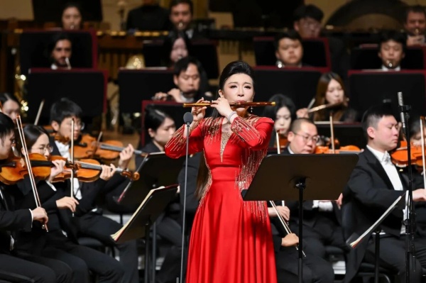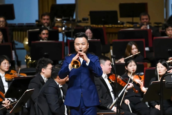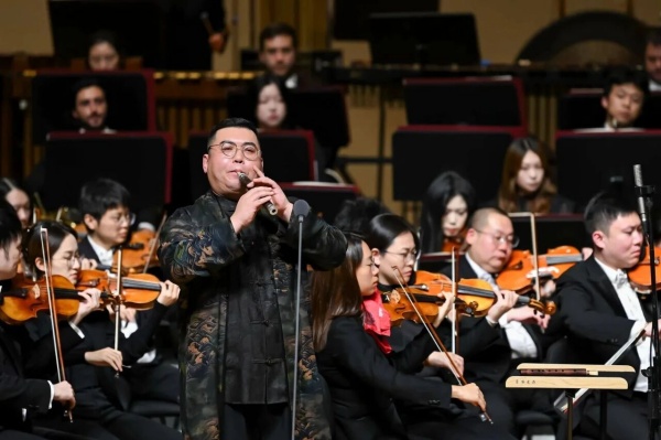 26日晚的音乐会上,武汉音乐学院中乐系的张莹莹以娴熟流畅的技巧演奏了竹笛协奏曲《后羿》(王子鸣曲),表现出了丰富的声部层次与乐队默契的配合,将作品的情感张力展现得淋漓尽致。中央民族大学青年教师郑杨演奏的笙协奏曲《江河万古流》(郑阳曲)气息控制恰到好处,其指尖流淌的音符充满古典韵律的典雅庄重,让观众看到了民族管乐在当代演绎中的多元可能。中央民族乐团的演奏家张佳理演奏的管子协奏曲《余晖下的背影》(李博曲),精巧地展现了乐曲的传统音乐元素与现代音乐节奏,让观众感受到了灵动多变的旋律和开阔的艺术视野。中国广播艺术团唢呐声部首席周艺翔演奏的唢呐协奏曲《遥远的呼唤》(周东朝曲,谢鹏、李晓萌配器),让每一个音符都饱含深情,演奏家既尊重原作的艺术构思,又融入自身的艺术感悟,以细腻的情感表达与精湛的技巧展现,让观众在熟悉的意境中感受到全新的艺术表达。