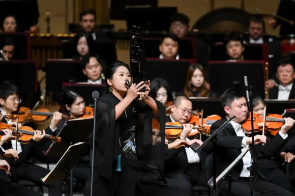 中央音乐学院青年教师冯天石演奏的竹笛与乐队协奏曲《幽兰逢春》(赵松庭、曹星曲,李滨扬改编)以传统音乐为根基,旋律悠扬婉转,演奏家精准把握了乐曲的风格特质,技巧运用炉火纯青,深深打动了在场观众。于旭明目前尚是中央音乐学院本科在读学生,其演奏的管子协奏曲《丝绸之路幻想组曲(第一、五乐章)》(赵季平曲),还原了民间音乐的质朴本真,又保持了与传统音乐的精神联结。上海音乐学院附中青年教师王俊侃演奏的竹笛与乐队《竹石图》(李博禅曲),突显了乐曲鲜明的主题,展现出青年艺术家在创新探索中的人文思考。中国音乐学院张倩渊演奏的唢呐协奏曲《唤凤(节选)》(秦文琛曲)将传统乐器的音色之美与现代作曲的结构之巧完美结合,既保留了传统音乐的精髓,又赋予其时代感与创新性。