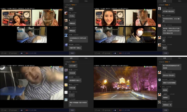 桌面戏剧中演员的身体作为一种媒介,需要和空间保持互动,身体和演员所处的现实环境之间建立了一种对话关系,以“远程在场”的方式强化了与现实之间的互动。以新型媒体技术造就的远程在场的方式,使得参与戏剧活动的人的在场方式产生了变化,这种远程在场的方式和以肉身在场的方式之间有一定的关联,通过“一种肉身的虚拟性在场,被机器捕获的声音、影响创造了一种崭新的远程在场方式,这种方式,并没有消灭肉身在场,而是与肉身在场相融合,开启了人类存在方式的新时代。”具体到桌面戏剧中来说,在直播过程里,镜头内相对有限的现实空间内将人的注意力聚焦与人的身体本身,放大了身体存在的意义。在《等待戈多》中,摄像头基本上是固定的,部分情况下,演员会通过手持手机在室内小范围移动,空间局限于家中与车内,演员的身体也不会长时间保持在距离摄像头很远的地方,一是因为离得太远人显得小,二是现实空间条件不允许,三是收音的需要,因此,观众会将注意力放在演员身体上。剧中弗拉基米尔打算出门看望生病的波卓这一段落中,躺在病床上相对静止的波卓比其他两人距离摄像头更远,动作也更少,因此,观众的注意力会更多地集中在身体动作较为丰富的弗拉基米尔身上,其几次想出门却终究未能出门的行动,能更好的传达出受制于“等待戈多而不能离开”与真实环境中疫情形势不允许其出门的双重内涵,此时,演员的身体充当媒介传递着信息,如同麦克卢汉所说的“媒介即信息”,而在线观看的观众此时也在用“弹幕”评论的方式发表着信息接收人的反馈意见,形成互动。