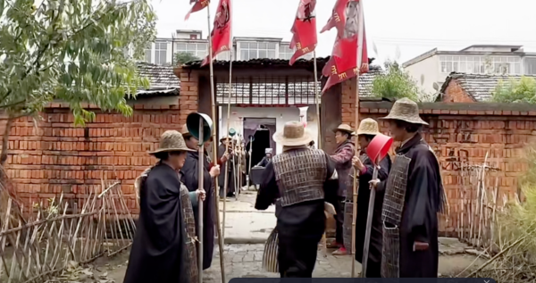 鲍小光的创作实践,鲜明体现了“非科班”创作者资源整合的民间智慧。其“制片美学”根植于阜南县的乡土环境:服装道具源自农民的家用物件,通过巧妙的符号置换,实现对历史场景的低成本、高创意转译。这种“因陋就简”本是经费紧张的无奈之举,逐渐成为极具自觉性的创作策略,一定程度上消解了影视工业所构筑的专业技术与资本壁垒。由此证明,在数字媒介技术高度普及的当下,艺术创作的核心驱动力可以源自创意、真诚与热爱。