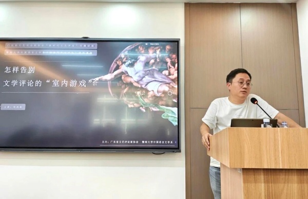 由广东省评协、暨南大学文学院中国语言文学系联合主办的“新时代文艺评论”系列讲座首场活动在广州举行。《扬子江文学评论》副主编何同彬应邀作开场讲座,深入剖析了新媒体与人工智能对文学评论带来的冲击,并提出切实的突破路径。