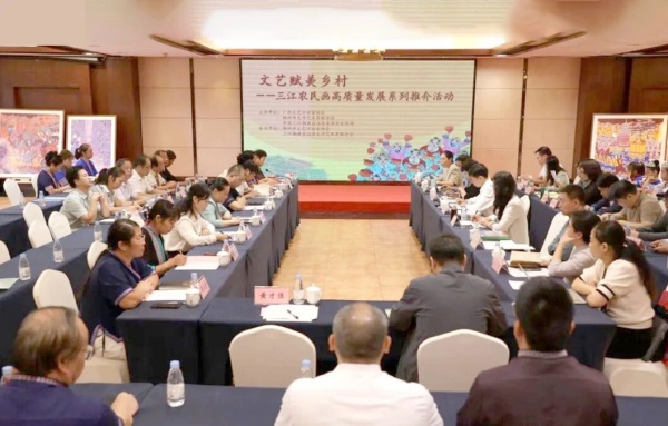由广西评协、柳州市文联等主办的“文艺赋美乡村——三江农民画高质量发展系列推介活动”在柳州举行。活动通过新书发布、座谈交流等形式,深化“评创结合”机制,推动基层文艺创作与文艺评论同频共振,为乡村全面振兴贡献文艺力量。