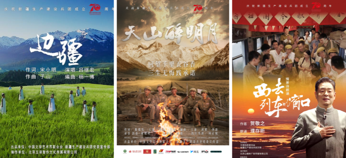 为庆祝新疆生产建设兵团成立70周年,由中国文联、兵团党委宣传部指导,中国剧协、中国音协、兵团文联共同主办的“新歌唱兵团”歌曲创作及MV首发仪式发布了音乐短视频《边疆》《天山醉明月》和诗歌短视频《西去列车的窗口》,以其浓郁和谐的民族旋律、感人至深的文化叙事受到各界关注,以艺术的形式再现了兵团人扎根边疆、奉献祖国的奋斗历史,弘扬了“热爱祖国、无私奉献、艰苦创业、开拓进取”的兵团精神,有力促进了各族群众的紧密团结。