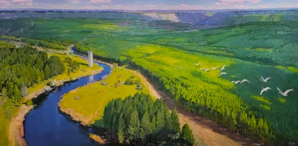 谭智群《美丽的塞罕坝》油画2022年(来源:“山东艺术学院”微信公号)