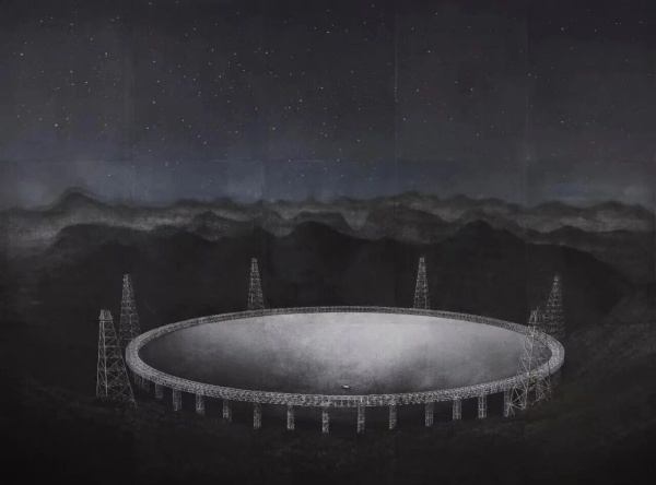 周吉荣《中国“天眼”》版画 2019年(来源:“中国美术馆”微信公号)