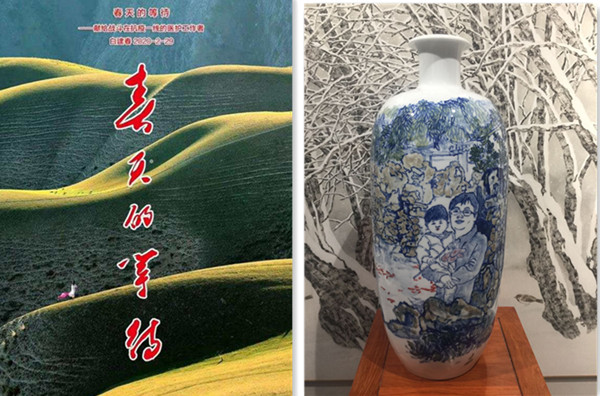 白建春摄影作品《春天的等待》(左)、张甘霖创作的抗“疫”陶瓷作品《解封后的第一次出游》(右)