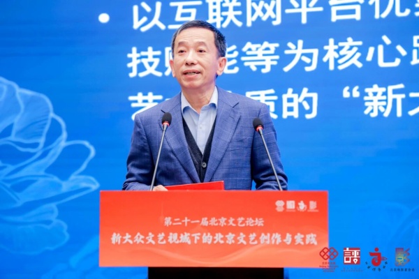 马新明在致辞中表示,北京文艺论坛创办21年来,始终坚持学术性、专业性、前瞻性,搭建起理论研讨、学术交流、思想碰撞的平台。本届论坛是深入学习贯彻党的二十届四中全会精神、市委十三届七次全会精神、服务全国文化中心建设的重要举措。北京作为全国文化中心,新大众文艺展现出蓬勃旺盛的生机活力,市文联始终坚持以人民为中心的工作导向,构筑激发人民广泛参与、面向全民创新创造、满足人民广泛精神体验的文艺生态,推动文艺事业为了大众、源于大众、创于大众、传于大众、享于大众、评于大众,充分彰显大众的文艺主体地位。