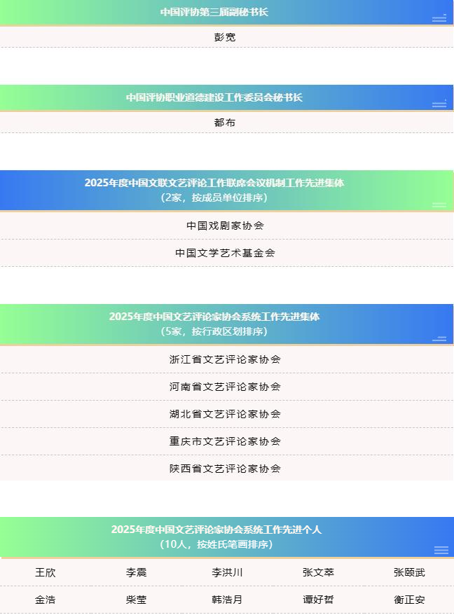 中国评协2026年度拟吸纳个人会员名单已即时在中国文艺评论网公示,公示期结束后将在中国文艺评论网和“中国文艺评论”公众号公布。