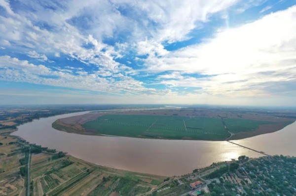 2021年6月18日在河南省兰考县黄河湾风景区拍摄的黄河(无人机照片)(新华社发 李金雷 摄)