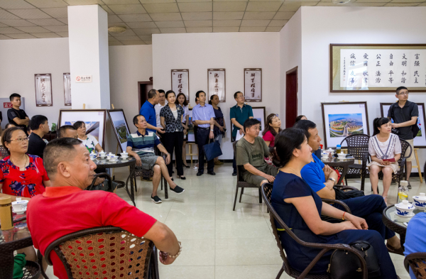 “咔嚓声中的龙门阵”——重庆市巴南区石龙镇“麻雀艺评”基层文艺评论摄影鉴赏活动现场。冯亚宏摄/光明图片