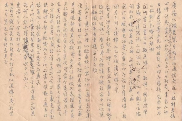 梅贻琦致赵赓扬信(局部) 20世纪50年代(图片来源:“清华大学艺术博物馆”微信公号)