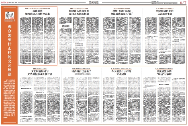 编者按:近年来,我国文艺展演行业在政策支持与技术驱动下蓬勃发展,为满足人民精神文化需求作出了重要贡献。然而,文艺展演行业仍面临诸多挑战,制约着文艺展演更好地满足观众需求。为此,中国文艺评论家协会、中国文联文艺评论中心围绕“观众需要什么样的文艺展演”这一主题,约请文艺评论家、创作者撰写系列文艺评论文章,以期通过多元视角的碰撞,加强评创结合,凝聚行业共识,为文艺展演的高质量发展提供思想助力与实践路径。本期“艺见”刊发8篇文章,以飨读者。