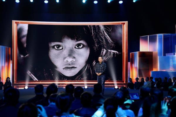 正是以这样一些作品为中心,这次活动在剧场和舞台呈现上作了新颖而感染力显著的设计。活动安排在一座沉浸式剧场中,设计出“短视频播映+分享人场景讲述+补充短视频+文艺节目”的综合展演形式。圆形舞台位于剧场中央,四周围坐观众,不设现场主持人而改为画外音报幕,有效地显示了现场互动交流的平等感和亲切感以及自主思考的沉浸感。每当现场大屏幕播映一部短视频作品后,即由分享人登台讲述。这些分享人有电视主持人、作家、影视戏剧演员、摄影家、雕塑家和评论家,同观众近距离地真诚分享自己观看作品后的个人心得,进一步介绍该作品产生的背景,或者补充介绍该作品背后的视频素材,满足了观众对于该作品故事整体和背景的好奇心,面对面地持续激发观众来自心底的深层感动。这样,整场活动围绕短视频作品展演的中心,为此而编织起由分享人、补充短视频和相关背景介绍等合力组成的作品意义链条,透过具体案例揭示新大众文艺的独特创造力和强大影响力。
