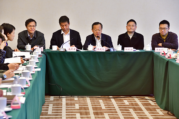 首届全国文艺评论新媒体骨干培训班开班式领导专家 左起:陆绍阳 庞井君 陈建文 向云驹 周由强
