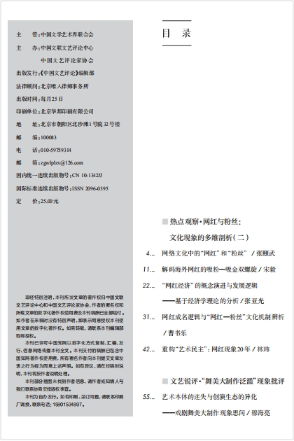 ☆本刊所发文章的稿酬和数字化著作权使用费已由中国文联文艺评论中心给付。新媒体转载《中国文艺评论》杂志文章电子版及“中国文艺评论”微信公众号所选载文章,需经允许。获得合法授权的,应在授权范围内使用,为作者署名并清晰注明来源《中国文艺评论》及期数。(点击取得书面授权)