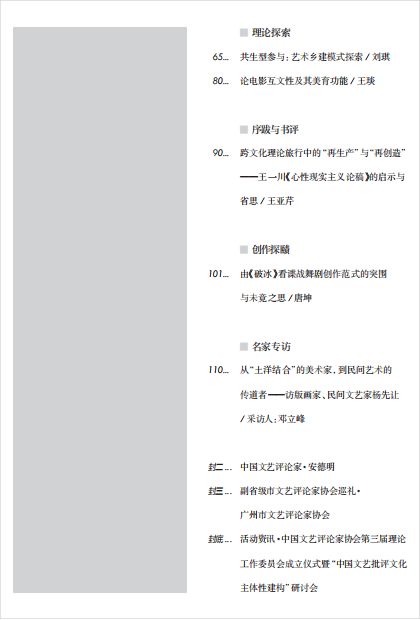 ☆本刊所发文章的稿酬和数字化著作权使用费已由中国文联文艺评论中心给付。新媒体转载《中国文艺评论》杂志文章电子版及“中国文艺评论”微信公众号所选载文章,需经允许。获得合法授权的,应在授权范围内使用,为作者署名并清晰注明来源《中国文艺评论》及期数。(点击取得书面授权)