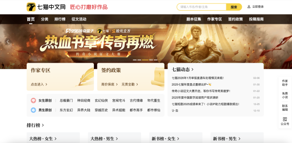 七猫中文网主页截图
