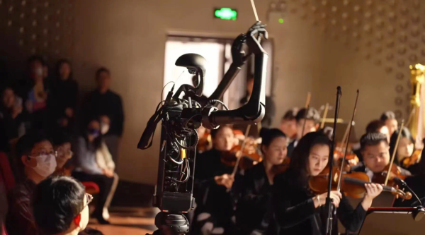 2024年,中央音乐学院音乐人工智能与音乐信息科技系团队研发AI机器人指挥(来源:“中央音乐学院”微信公号)