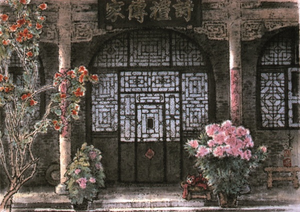 那时,我创作了一批我称之为“彩绘”的作品,就是用中国的笔墨和宣纸画“西洋画”。中国有厚重的笔墨传统,形成了固定的美学范式,我尝试对这一笔墨传统做些许创新,融入自己的想法,就将西方绘画的写实表达、光色和线条处理等融会到笔墨绘画之中,创作了一些我比较满意的作品。其中很多作品画的是我的故乡,烟台养马岛旧居的院子、院门、老门楼和渔村风光……在国外的生活环境中,我对故乡的思念被放大了。另外一部分创作则描绘了异国景观,我用彩绘画出了美国的城市和人文风情。1996年开始,这些彩绘作品多次在休斯顿“上尚艺苑”及美国其他城市展出,引起了当地美术界的关注。