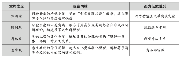 以上四个维度共同构成了“体—时—身—用”的本体论框架。通过激活中华美学“即现象即本体”的思维特质,这种范式转化不仅解构了西方时尚话语的形而上学基础,更在生活美学层面重建了“天工人意”相融的时尚认知范式,为全球时尚困境提供了中国式解决方案。概括而言,这一新的本体论框架与转化方式如表1所示。