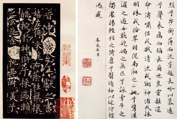 左:[晋]王献之《洛神赋十三行》(局部);右:[清]姜宸英《洛神赋》楷书(局部)