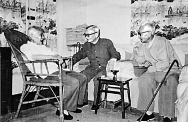 1982年7月7日下午,朱光潜(左)、茅以升(中)、宗白华三位老学者在朱光潜家会面谈心